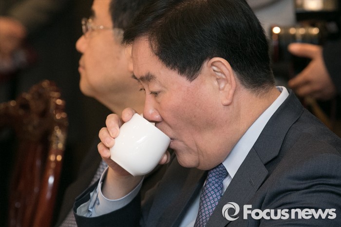 (서울=포커스뉴스) 최경환 새누리당 의원이 25일 오후 서울 여의도의 한 중식당에서 열린 중진의원 오찬 간담회에 참석해, 물을 마시고 있다.