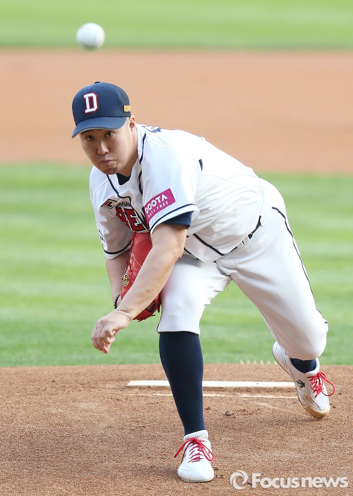 (서울=포커스뉴스) 28일 서울 잠실구장에서 열린 2016 프로야구 SK-두산 경기에서 1회초 두산 선발투수 유희관이 투구하고 있다.