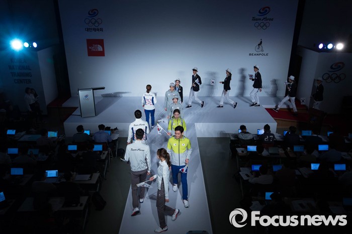 (서울=포커스뉴스) 27일 오후 서울 노원구 태릉선수촌에서 열린 '2016 리우하계올림픽 D-100일 미디어행사'에서 선수들과 모델들이 새로운 유니폼을 선보이고 있다.