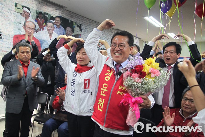 이어 "이 나라를 대표하고 수권 능력을 갖고 새누리당과 국민이 원하는 어떤 분이라도 우리 정체성에 맞다면 적극적으로 모셔서 해야한다"고 덧붙였다.제20대 국회의원선거일인 13일 정운천 새누리당 전주시을 후보가 당선이 확실시 되자 자신의 사무소에서 세리머니를 하고 있다. <사진제공= 정운천 후보 선거사무소> 2016.04.14 포커스포토