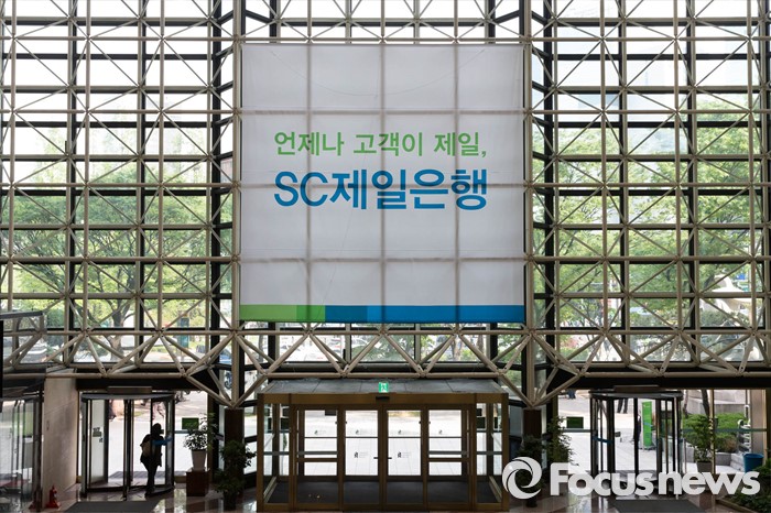 (서울=포커스뉴스) 지난 6일 SC제일은행은 브랜드명의를 '한국SC은행'에서 'SC제일은행'으로 바꿨다. 28일 오후 서울 종로구 SC제일은행 본점에 새로운 현수막이 걸려있다.