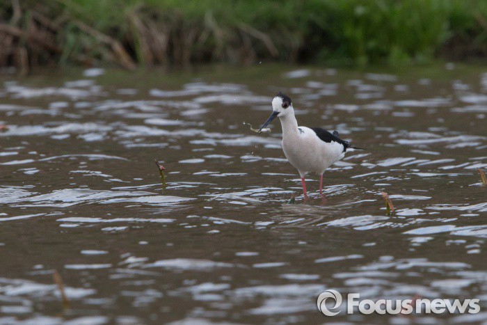 (시흥=포커스뉴스) 장다리물떼새가 25일 오전 경기도 시흥시 관곡지에서 작은 물고기를 잡아먹고 있다. 장다리물떼새는 일부가 한반도에서 번식한다