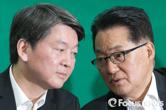 (서울=포커스뉴스) 2일 오전 서울 여의도 국회에서 열린 국민의당 최고위원회의에 참석한 안철수(왼쪽) 상임공동대표와 박지원 원내대표가 대화하고 있다.
