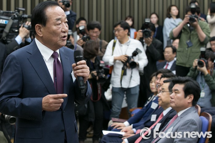 (서울=포커스뉴스) 서청원 새누리당 의원이 26일 오전 서울 여의도 국회에서 열린 당선자 워크숍에 참석해, 당선자 대표 인사말을 하고 있다.