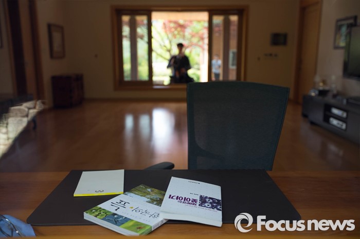 (김해=포커스뉴스) 고 노무현 전 대통령 서거 7주기를 앞두고 1일 오전 노 전 대통령의 사저가 공개되고 있다. 안채 책상위에 노무현 전 대통령이 읽던 책들이 놓여져 있다.