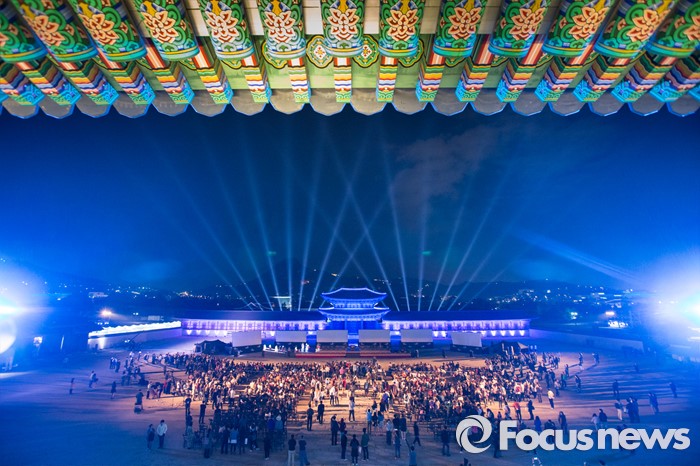 (서울=포커스뉴스) 29일 저녁 서울 경복궁 흥례문 광장에서 열린 제 2회 궁중문화축전 개막제에서 경복궁의 역사를 빛으로 담아낸 '미디어 파사드' 공연이 시선을 사로잡고 있다. '오늘, 궁을 만나다'를 주제로 열리는 2016년 궁중문화축전은 다채로운 프로그램들과 함께 5월 8일까지 열린다.