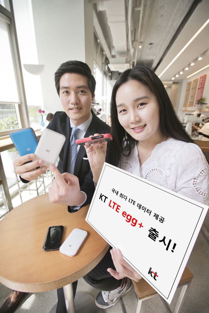 박현진 KT 무선사업담당은 “KT는 국내 최다 데이터를 제공하는 요금제와 다양한 편의기능을 갖춘 단말 출시를 통해 고객들이 통신요금 부담을 줄이면서 LTE 데이터를 사용할 수 있는 에그의 장점을 극대화시켰다”고 말했다.KT가 국내 최다 데이터를 제공하는 에그플러스 2종을 27일 출시했다.<사진제공=KT>