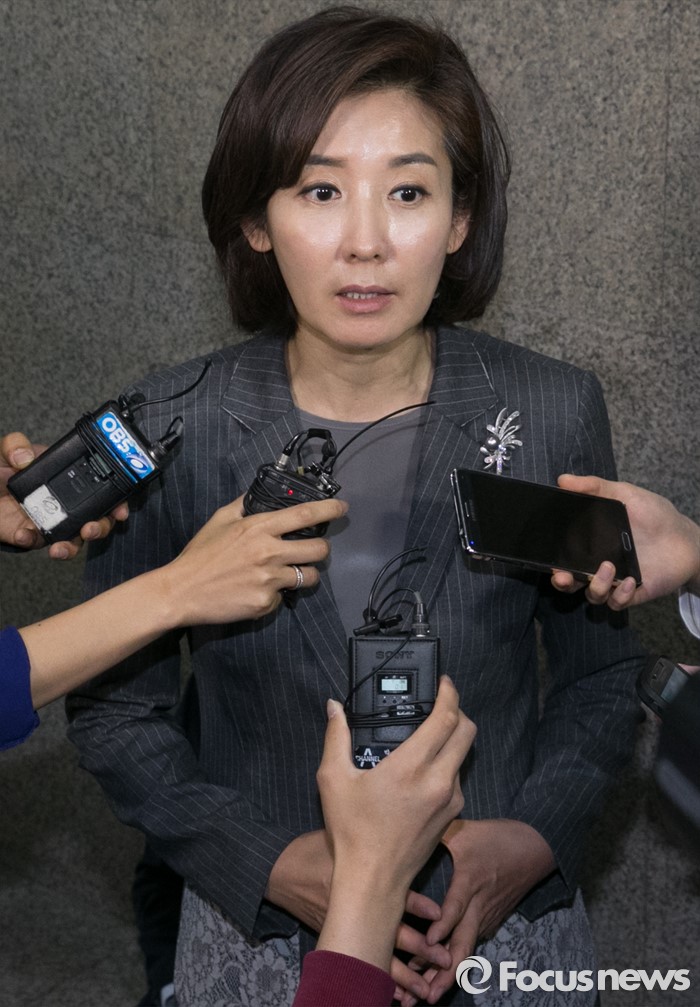 (서울=포커스뉴스) 새누리당 차기 원내대표 후보로 거론되는 나경원 의원이 29일 오전 서울 여의도 국회에서 원유철 원내대표와 면담을 마친 뒤 취재진 질문에 답하고 있다.