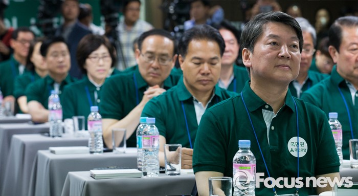 (양평=포커스뉴스) 안철수(오른쪽) 국민의당 상임공동대표와 20대 총선 당선인들이 26일 오후 경기도 양평 한화리조트에서 열린 20대 총선 당선인 워크숍에 참석해 김병준 전 대통령 정책실장의 강연을 경청하고 있다.