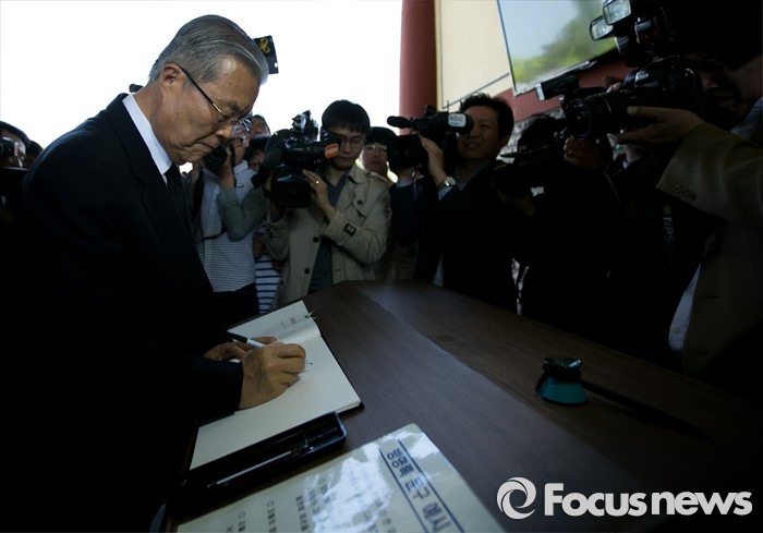 | △ 방명록 작성하는 김종인 |