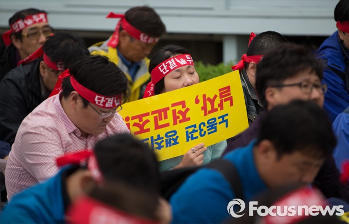 (서울=포커스뉴스) 27일 오후 서울 종로구 정부종합청사 앞에서 전교조(전국교직원노동조합)와 민주교육과 전교조 지키기 전국행동의 주최로 교육주체 결의대회가 열리고 있다.