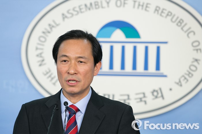 (서울=포커스뉴스) 우상호 더불어민주당 의원이 29일 오후 서울 여의도 국회 정론관에서 당 원내대표 출마 기자회견을 하고 있다.
