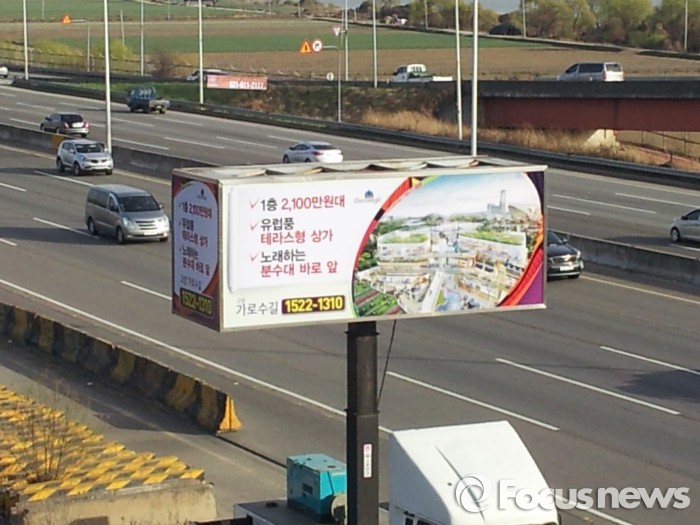 고양시는 "사전 예약이 법률에 규정된 분양 절차는 아니지만 그렇다고 명백하게 법을 위반했다고 보기도 힘들다"며 "적법한 행위인지에 대해 경찰에 수사를 의뢰했고, 경찰은 분양에 관한 법률 위반으로 판단해 기소의견으로 검찰에 송치한 상태"라고 설명했다.'고양 가로수길' 분양을 알리는 대형광고탑.