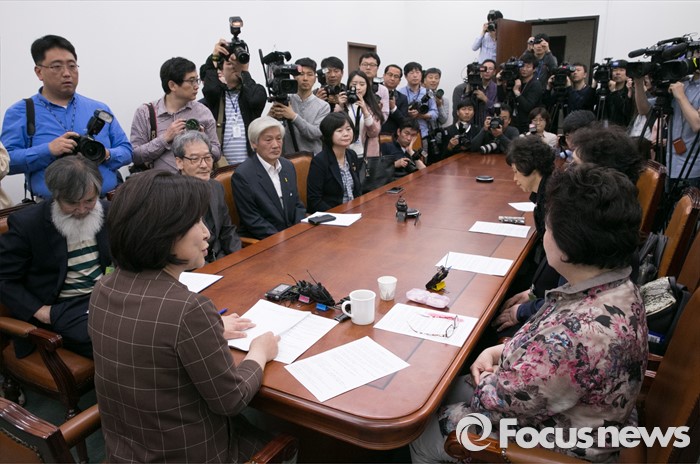 | △ 가습기 살균제 피해자들 만난 정의당 심상정 |