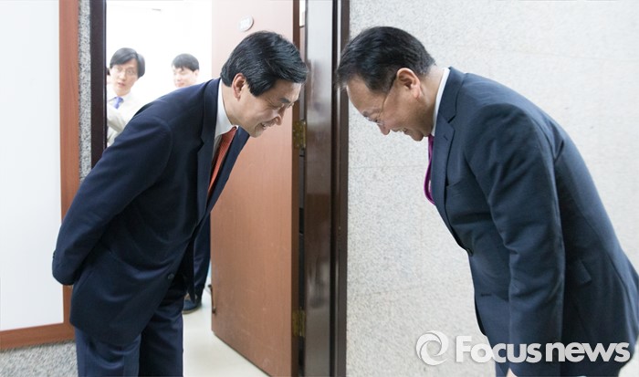 | △ 인사하는 유일호와 이종걸 |