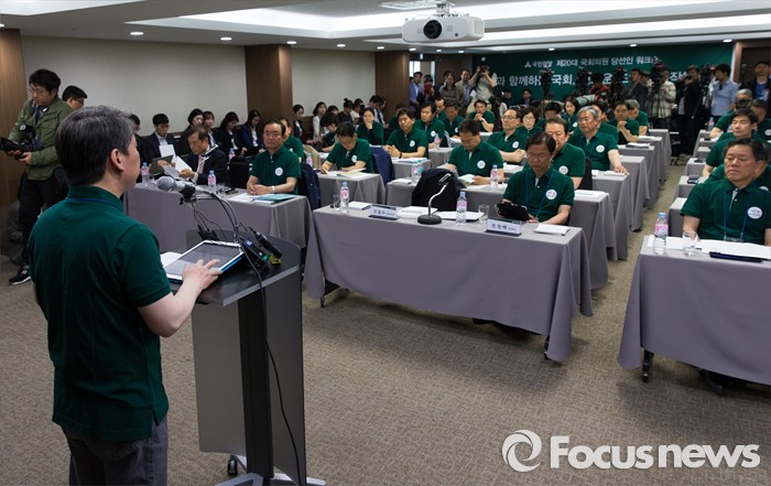 (양평=포커스뉴스) 안철수 국민의당 상임공동대표가 26일 오후 경기도 양평 한화리조트에서 열린 20대 총선 당선인 워크숍에 참석해 인사말을 하고 있다.