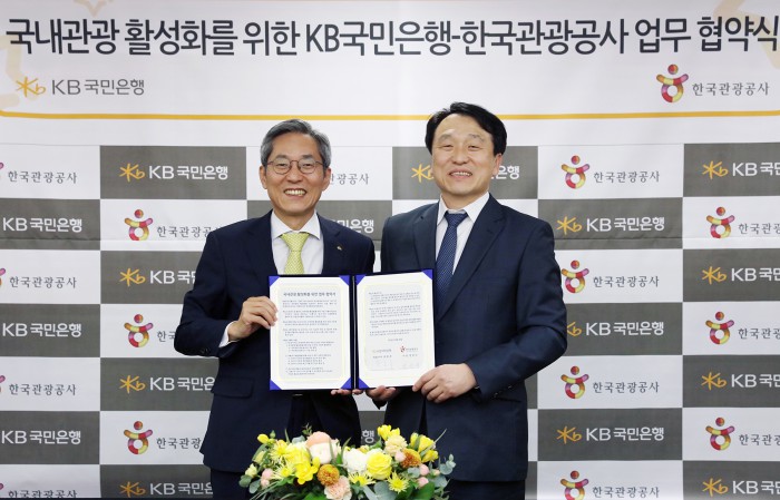 KB금융그룹은 KB국민은행과 한국관광공사가 28일 서울 여의도 본점에서 업무협약을 체결하고 국내 휴가문화 조성 등 다양한 분야에서 상호협력하기로 했다고 29일 밝혔다.