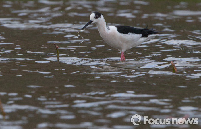 (시흥=포커스뉴스) 장다리물떼새가 25일 오전 경기도 시흥시 관곡지에서 작은 물고기를 잡아먹고 있다. 장다리물떼새는 일부가 한반도에서 번식한다
