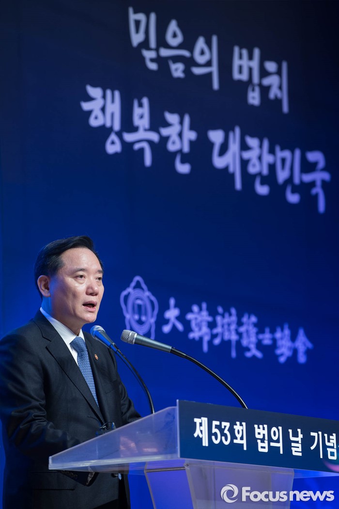 (서울=포커스뉴스) 김현웅 법무부장관이 25일 오전 서울 서초구 대검찰청에서 열린 제53회 법의날 기념식에서 기념사를 하고 있다.
