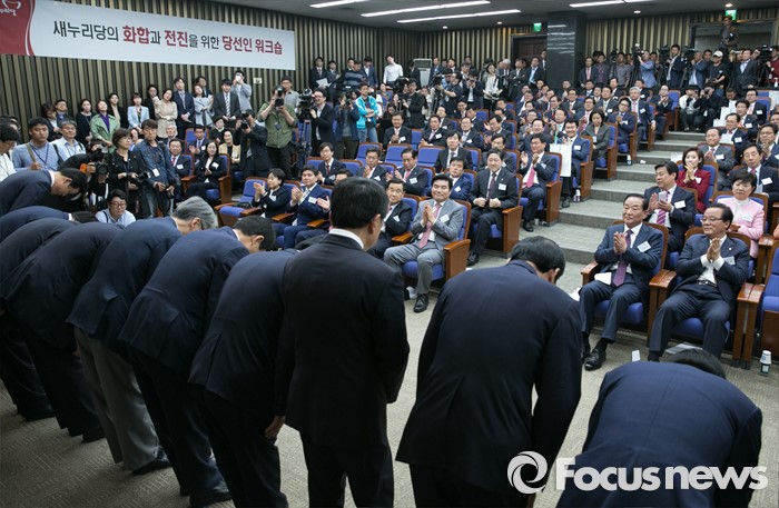 그러면서 "이제 총선에서 확인된 국민의 준엄한 목소리를 높이 받들어야 한다. 새누리당은 통렬한 반성을 하며 국민의 입장에서 당을 쇄신하고 변화시켜 나가겠다"며 "국민께서 성난 민심의 회초리를 거두고 닫힌 마음을 열 수 있도록 진정성이 담긴 행동으로 실천하겠다"고 약속했다.