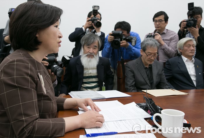 (서울=포커스뉴스) 심상정 정의당 상임대표가 28일 오전 서울 여의도 국회에서 가습기 살균제 3, 4등급 피해자 모임과 의료기록 분석 결과 및 피해 진상규명 등을 위한 간담회를 하고 있다.