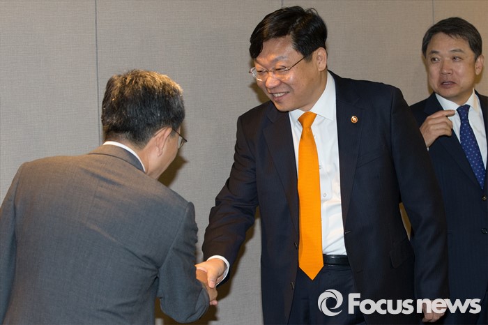 | △ 참석자들과 인사 나누는 주형환 장관 |