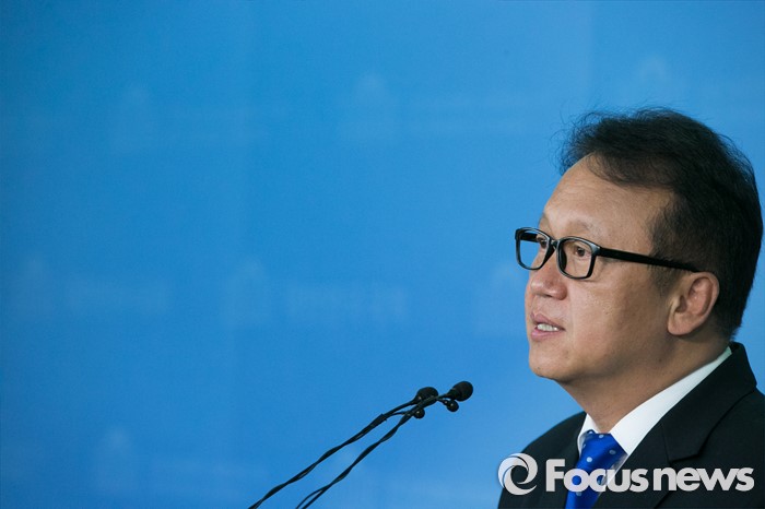 (서울=포커스뉴스) 민병두 더불어민주당 의원이 29일 오후 서울 여의도 국회 정론관에서 원내대표 출마 기자회견을 하고 있다.