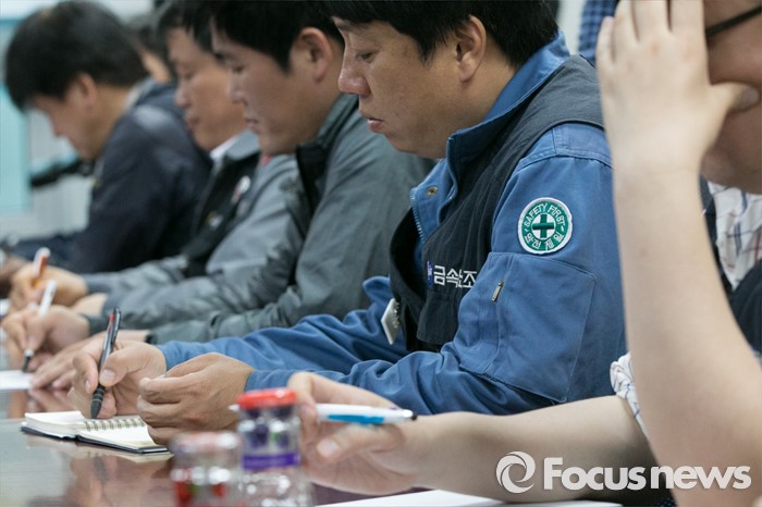 (서울=포커스뉴스) 27일 오후 서울 여의도 국회 의원회관에서 조선업종 구조조정 긴급현안 간담회에 참석한 조선업계 노조 대표들이 무거운 표정을 하고 있다.