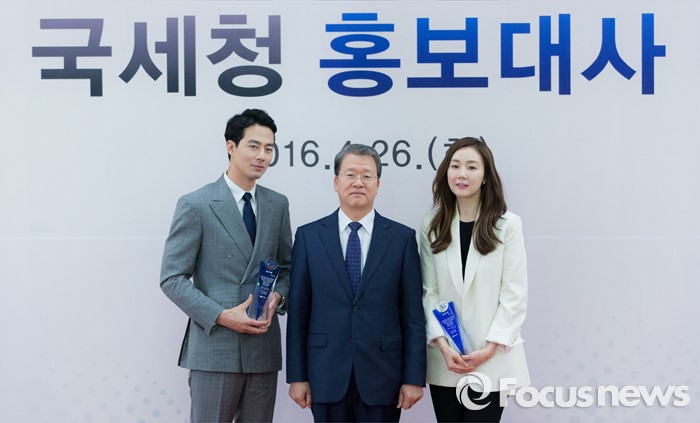 (서울=포커스뉴스) 국세청은 26일 탤런트 최지우씨와 조인성씨를 국세청 홍보대사로 위촉했다. 앞서 두 사람은 '제50회 납세자의 날'에 모범납세자로 선정돼 대통령 표창을 수상한 바 있다.