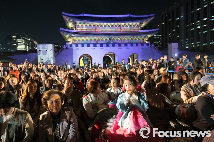 (서울=포커스뉴스) 고궁에 온 관람객들이 29일 밤 경복궁 흥례문 광장에서 열린 제2회 궁중문화축전 개막제를 관람하고 있다. '오늘, 궁을 만나다'를 주제로 열리는 2016년 궁중문화축전은 다채로운 프로그램들과 함께 5월 8일까지 열린다.