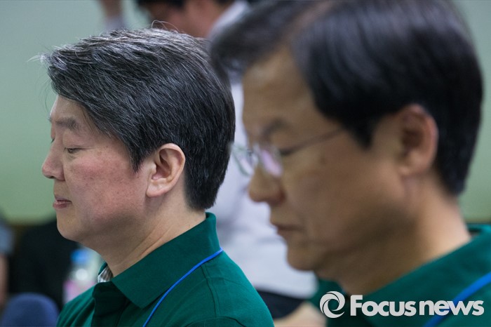 (양평=포커스뉴스) 안철수(왼쪽) 국민의당 상임공동대표와 천정배 공동대표가 26일 오후 경기도 양평 한화리조트에서 열린 20대 총선 당선인 워크숍에 참석해 생각에 잠겨 있다.