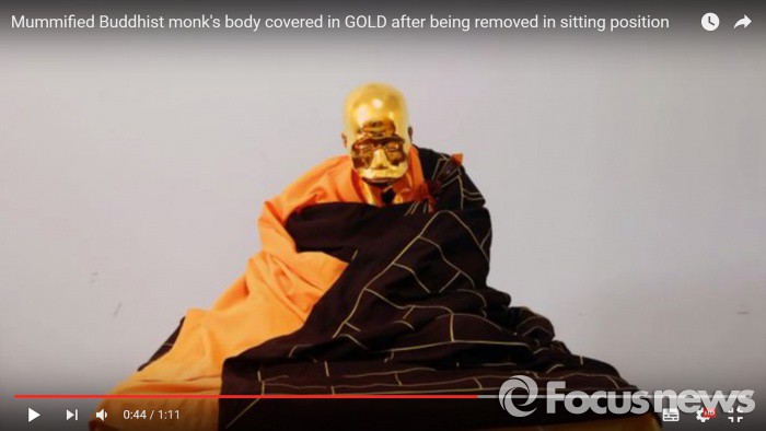 푸허우가 주석하던 사찰 주지인 리렌은 "거즈와 금박으로 덮은 푸허우 등신불은 투명한 유리 상자 안에 놓인 채 신도들이 불공을 드리는 곳에 자리를 잡을 것"이라고 말했다.4년 전 입적한 중국 고승 푸허우의 몸이 등신불로 재탄생했다. <사진출처=유튜브 갈무리> 2016.05.02 NO 바이라인 영국 일간 텔레그래프는 불교에서는 도덕적으로 무결한 고승은 방부 처리를 하지 않아도 자연적으로 미라가 된다고 믿는다고 29일(현지시간) 보도했다. <사진출처=유튜브 갈무리> 2016.05.02 NO 바이라인