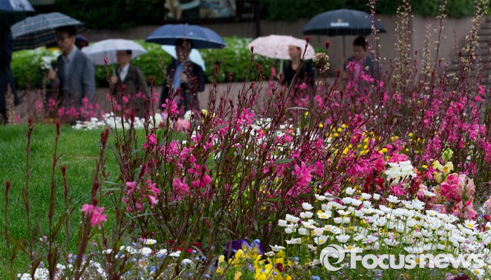 (서울=포커스뉴스) 전국이 흐리고 비가 내리는 3일 오전 서울 청계광장에서 시민들이 발걸음을 재촉하고 있다.