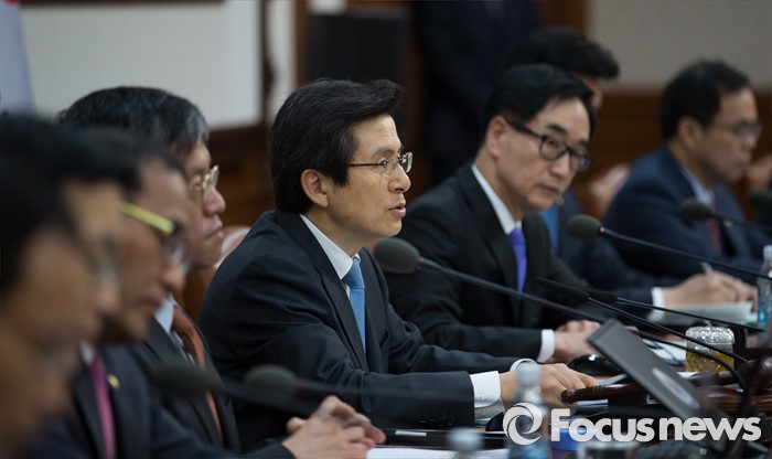 (서울=포커스뉴스) 황교안(가운데) 국무총리가 3일 오전 서울 종로구 정부서울청사에서 열린 국무회의에 자리해 모두발언 하고 있다.