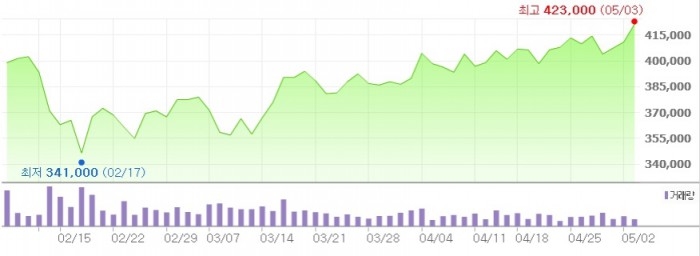이달미 현대증권 연구원은 "1분기 매출액은 전년 대비 23.3% 증가한 1조4851억원, 영업이익은 21% 늘어난 3378억원을 기록해 시장 예상치를 각각 8.0%, 5.3% 웃돌았다"고 분석했다.