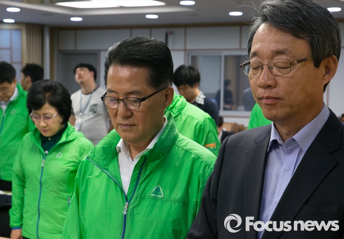 (서울=포커스뉴스) 박지원(오른쪽 두번째) 국민의당 원내대표, 김성식(오른쪽 첫번째) 정책위의장이 3일 오전 서울 여의도 국회 의원회관에서 열린 정책역량 강화 집중워크샵에 참석해 20대 국회 초선 당선인들과 묵념을 하고 있다.