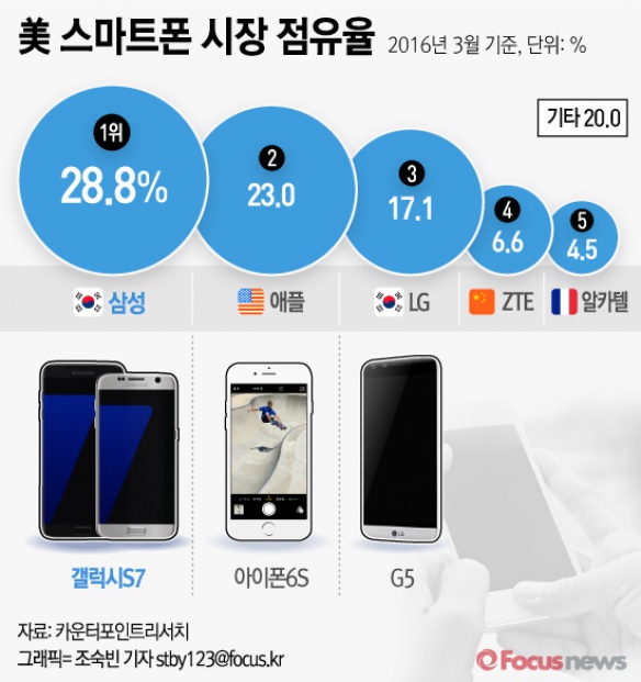 | △ [그래픽] 美 스마트폰 시장 점유율 |
