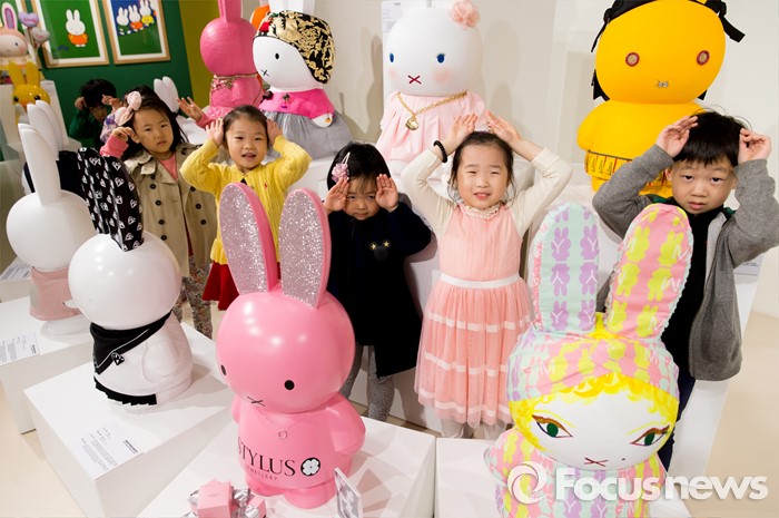 (서울=포커스뉴스) 3일 오전 서울 송파구 롯데백화점 잠실점 에비뉴엘 아트홀에서 '매니 미니 미피'아트 전시회를 찾은 어린이들이 콜라보레이션 미피와 기념촬영을 하고 있다. 미피 탄생 61주년 기념으로 열린 이번 전시는 오는 29일까지 열린다.