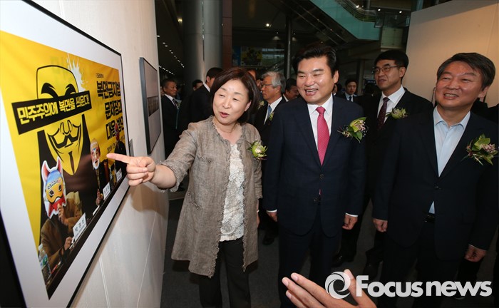 (서울=포커스뉴스) 3일 오전 서울 강남구 코엑스에서 열린 '52회 한국보도사진전 개막식'에 참석한 원유철(가운데) 새누리당 원내대표, 안철수(오른쪽) 국민의당 상임공동대표, 심상정 정의당 상임대표가 이동희 사진기자협회장의 안내를 받으며 전시된 사진을 감상하고 있다. '찰나의 기록, 시대의 진실'을 주제로 진행된 이번 전시는 시대의 진실을 기록한다는 사명감으로 역사의 현장을 묵묵히 지키며 취재한 수백만 컷 중 선정된 150여점과 '현장의 사진기자', '역대 대상 수상작' 등 250여점의 사진이 전시된다.