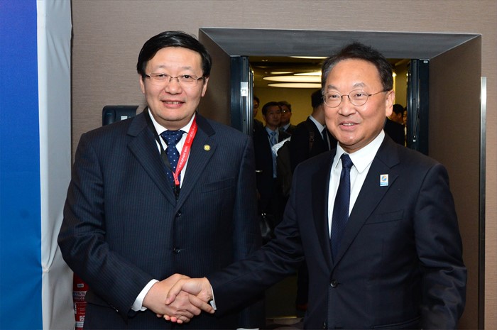 | △ 중국 재무장관과 악수하는 유일호 부총리 |