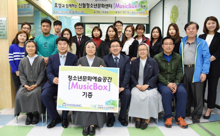 효성은 문화예술후원사업의 일환으로 학업에 지치고 감수성이 민감한 시기의 많은 청소년들이 건전한 여가시간을 보내고 스트레스를 해소하길 바라는 마음으로 센터에 '뮤직박스' 설치를 후원했다.