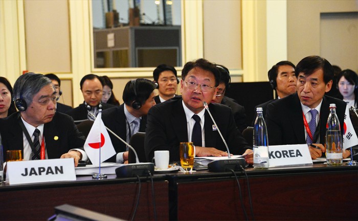 (서울=포커스뉴스) ADB연차 총회 참석차 독일 프랑크푸르트를 방문 중인 유일호 부총리 겸 기획재정부 장관이 5월 3일(현지시간) 메리어트호텔에서 열린 제19차 ASEAN+3 재무장관 및 중앙은행 총재 회의에 참석해, 한국의 4대 구조 개혁과 관련하여 발언을 하고 있다. <사진제공=기획재정부>