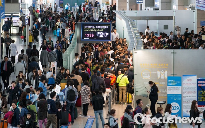 (인천공항=포커스뉴스) 4일 오전 인천국제공항 출국장에 황금연휴를 앞두고 출국하는 여행객들로 북적이고 있다.