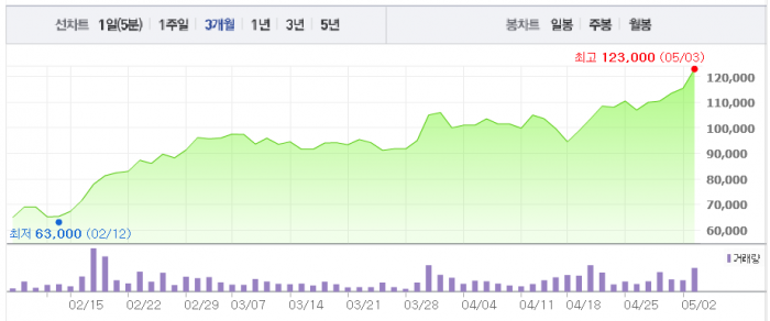 각 증권사에서 OCI의 목표주가를 13만원을 제시하고 있다. 3일 OCI 주가도 12만원을 단숨에 뛰어 넘었다. 다만 1분기 호실적은 이미 시장에서도 선반영하고 있었다.