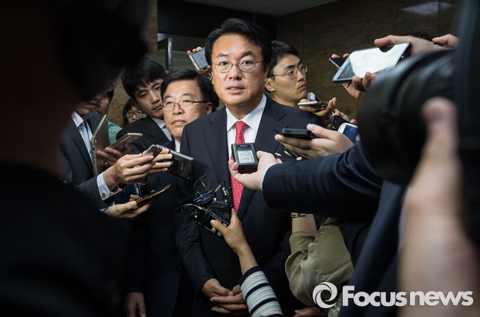 이어 "그런 의미에서 우리가 박 대통령과 함께 긴밀한 당정청 협의를 가동해 그걸 가지고 야당과 협상하고 타협하고 소통하는 그런 일들을 해야 된다"고 당부했다.(서울=포커스뉴스) 3일 오후 서울 여의도 국회에서 열린 새누리당 20대 국회 첫 원내대표 및 정책위의장 선출을 위한 당선자 총회에서 선출된 정진석 신임 원내대표가 취재진 질문에 답하고 있다. 2016.05.03 김흥구 기자
