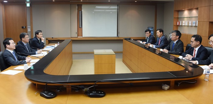 (서울=포커스뉴스) 최상목 기획재정부 차관이 4일 오전 국책은행 자본확충을 위한 관계기관 회의를 주재, 모두발언을 하고 있다. <사진제공=기획재정부>