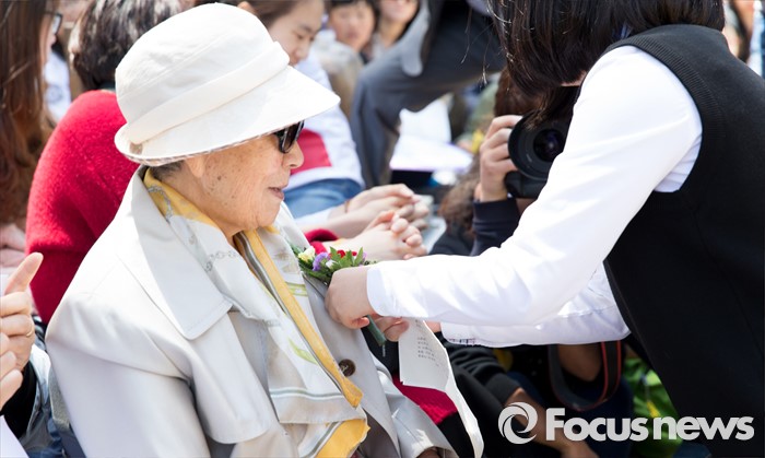 | △ 카네이션 받는 김복동 할머니 |
