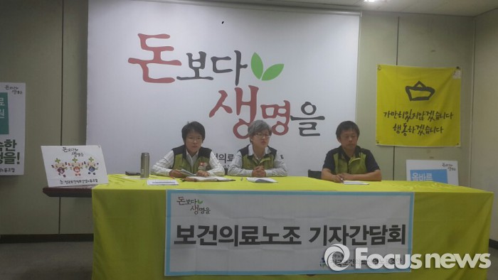 한편, 오는 9일 오후 1시부터 5시까지 한국프레스센터 20층 국제회의장에서 '메르스 사태 그 후 1년, 보건의료산업 노사는 무엇을 함께 할 것인가?'라는 주제로 노사공동 산별대토론회가 열릴 예정이다.4일 오전 11시 보건의료노조 회의실에서 2016 보건의료노조 교섭과 투쟁계획 관련 기자간담회가 열렸다.(왼쪽부터) 한미정 사무처장, 유지현 위원장, 나영명 정책실장. 2016.05.04 조안나 기자
