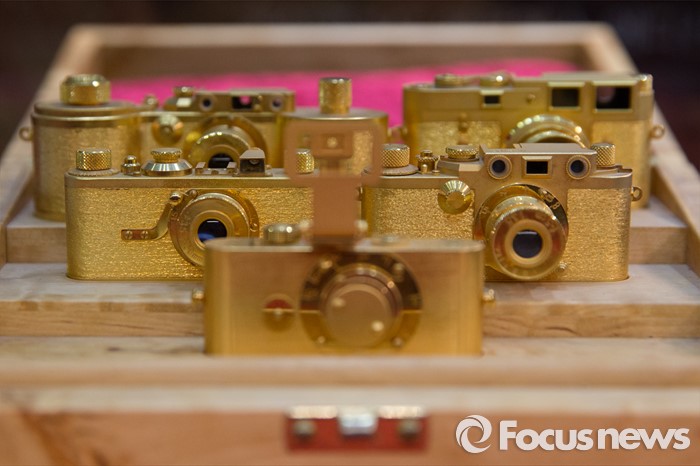 (서울=포커스뉴스) 4일 오후 서울 강남구 코엑스 A,B홀에서 열린 2016 서울국제사진영상기자재전(P&I)에 라이카 미니어쳐 골드 세트가 전시되어 있다.