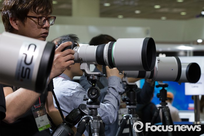 (서울=포커스뉴스) 4일 오후 서울 강남구 코엑스 A,B홀에서 열린 2016 서울국제사진영상기자재전(P&I)에서 관람객들이 제품을 구경하고 있다.